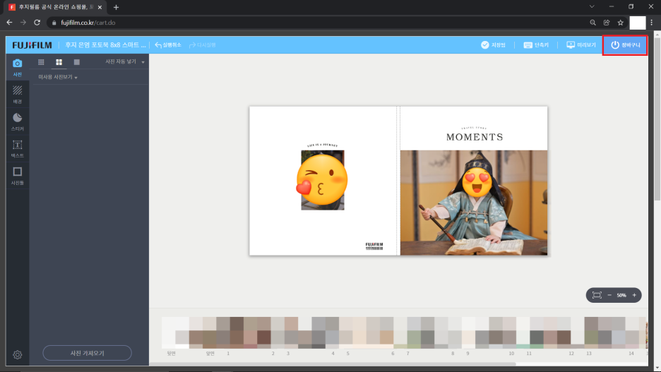 10. 사진 선택 완료 후 우측 상단 장바구니 클릭