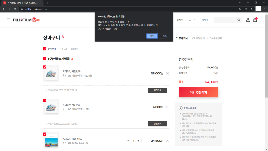 ※ 주문하기 클릭 후 30분 지나면 포토북 주문 취소 불가