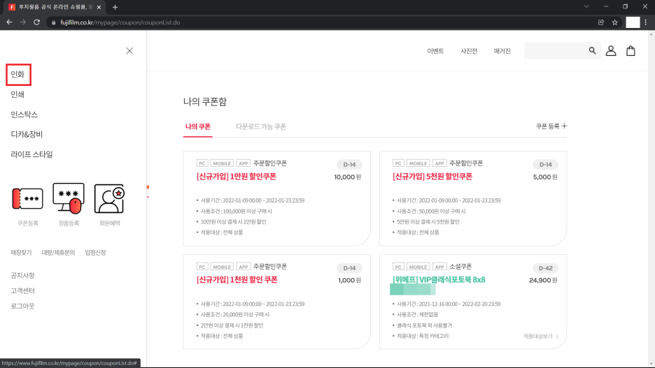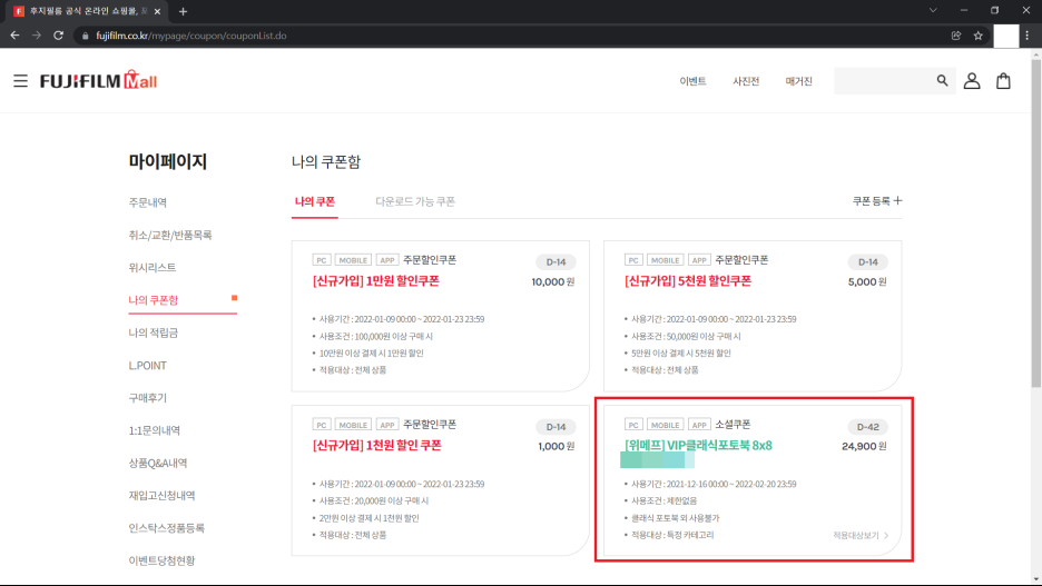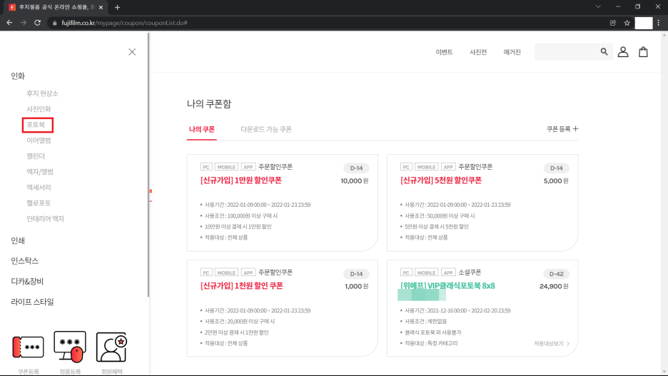 1. 소셜 커머스에서 후지필름 포토북 쿠폰 구입