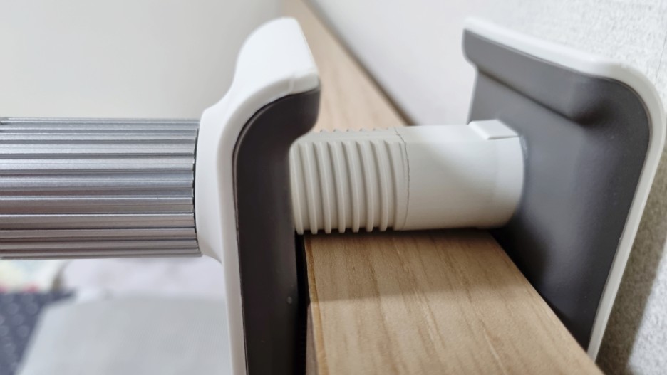 침대 헤드에 닿는 부분은 실리콘으로 마감이 되어 있어서 상처가 나질 않는다. 클램프(집게)를 침대 헤드에 끼운 뒤 클램프 조이개를 돌리면 쉽게 침대 헤드에 설치할 수 있다.