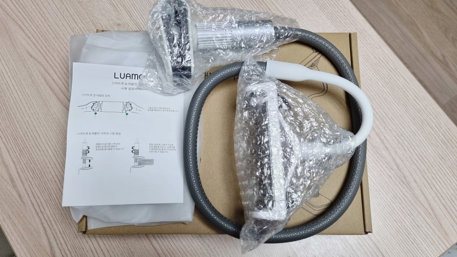 제품 디테일 컷에서 볼 수 있듯이 거치대가 완제품이기 때문에 따로 조립할 필요가 없다! 거치대 특성상 조립을 잘못하면 사용하다가 폰이나 태블릿을 떨어뜨릴 수가 있는데 루아모 침대 태블릿 거치대는 조립된 상태로 나오기 때문에 튼튼하다.