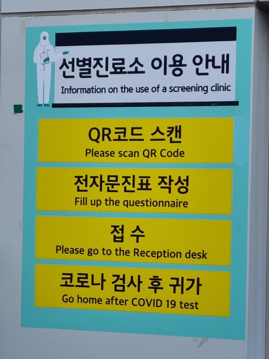 검사 접수 막바지에 선별진료소 PCR검사 절차가 안내된 표지판이 있어서 촬영했다.
