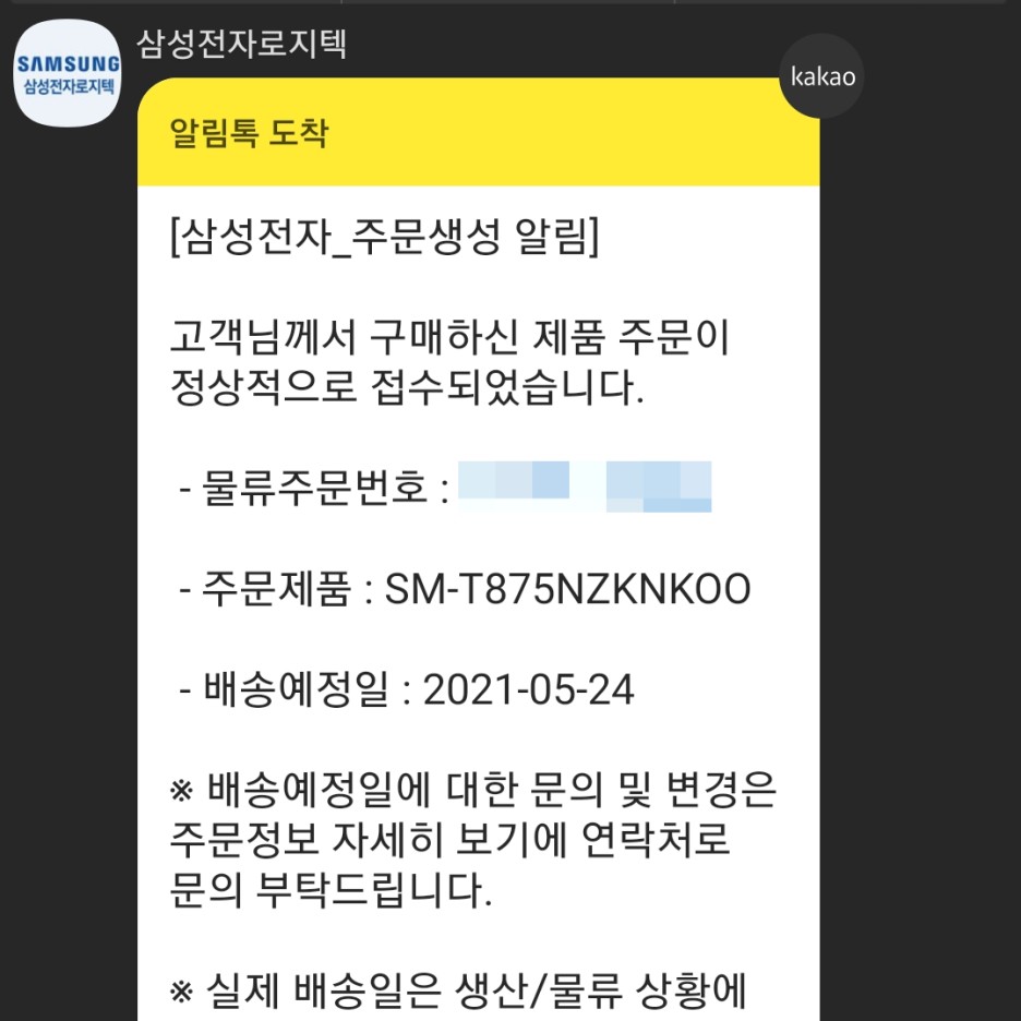 언제 갤탭이 오나 발을 동동 구르며 갤탭을 사용할 때 필요한 보호필름, 거치대 등을 알아보는 중에 태블릿이 배송되었다는 카톡 알림을 받았다. 월요일 도착 예정이라 내가 직접 받지는 못해서 아쉬웠지만 그래도 갤럭시 탭 S7이 나에게로 온다는 사실이 중요했다ㅎㅎ