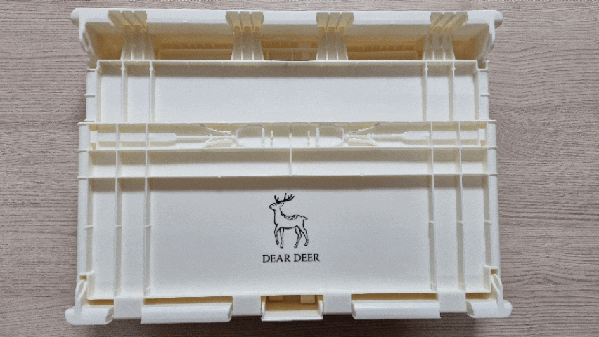 아래 첨부한 리뷰 영상에서도 다루었지만, 디어디어 폴딩박스가 마음에 들었던 점은 크게 세 가지인데 첫 번째는 크림색, 두 번째는 예쁜 디어디어 로고, 그리고 마지막은 에코보드를 열지 않고 중간에 물건을 꺼낼 수 있도록 오픈도어 방식이라는 점이다.