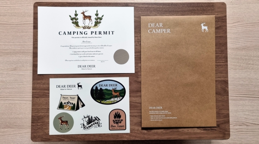 3) 디어디어(DEAR DEER) 한정판 스티커팩 (스티커 및 DEAR DEER 인증 캠핑허가서)