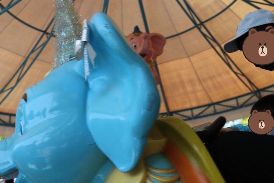 에버랜드 놀이기구 '나는 코끼리'는 코끼리 모양의 칸에 탑승하면 뱅글뱅글 돌고, 앞에 빨간 버튼을 누르면 코끼리가 내려가고 손을 떼면 코끼리가 다시 올라간다. 기다리는 동안 한 명의 아이가 울어서 운행을 잠시 멈추었다가 다시 운행을 하였기 때문에 뚱주가 울지 않을까 걱정했는데 뚱주는 신나서 자기가 직접 빨간 버튼도 눌러보고 즐거운 시간을 보냈다.