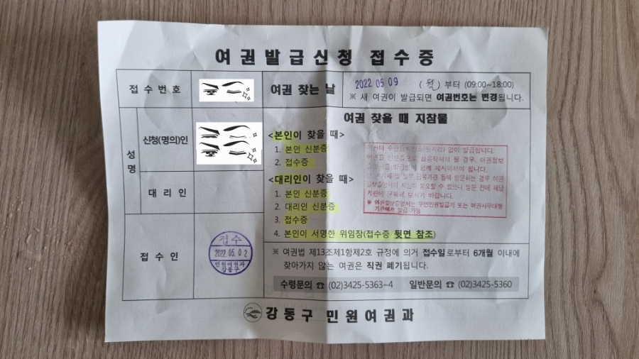 다행히 여권이 빨리 나와서 5월 6일(금)에 여권을 수령할 수 있었다.
