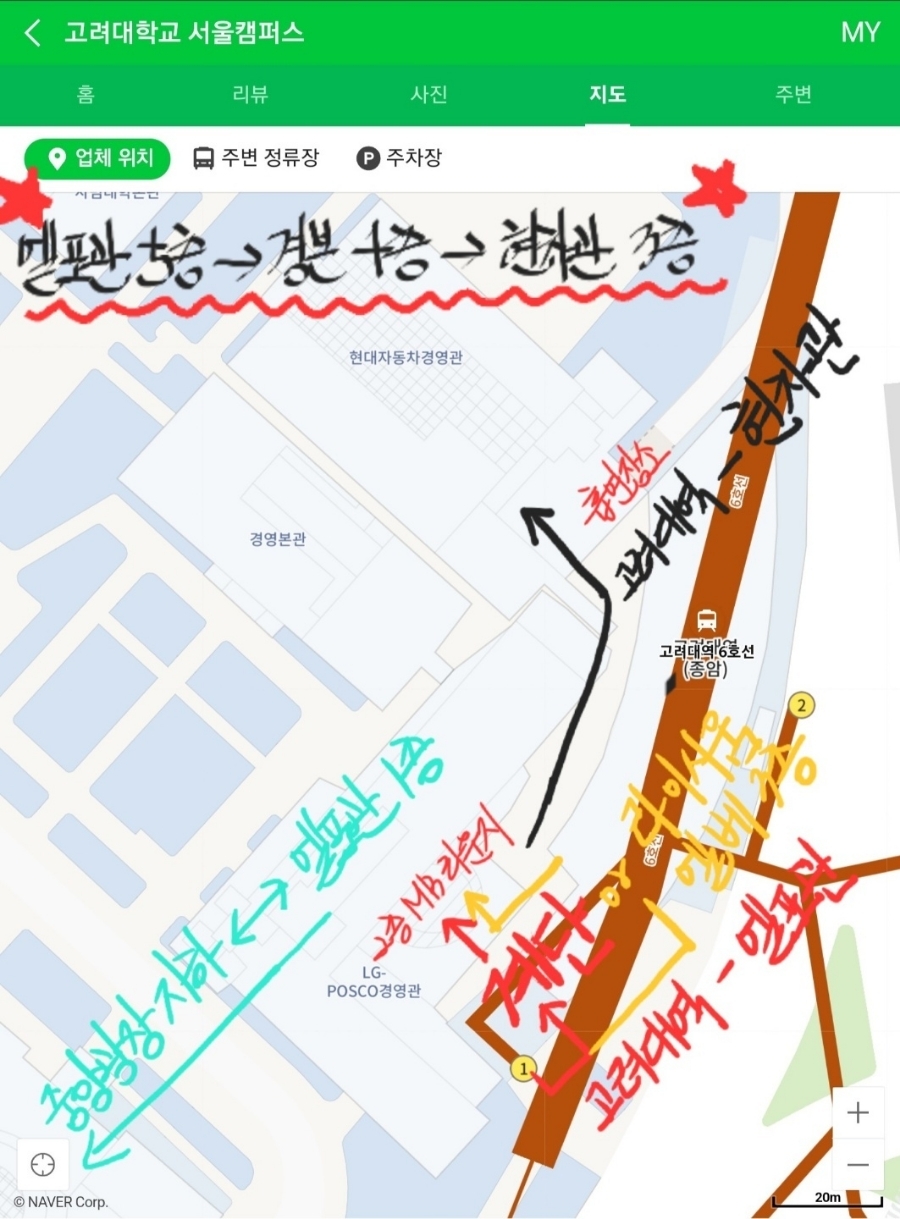 수업과 별개로 비공인 KMBA(큼바) 단톡방 챗봇으로써 고려대역에서부터 엘지포스코(LG-Posco) 경영관과 현대자동차경영관으로 가는 최단 방법에 대한 문의가 있어서 아래와 같이 정리해서 공유했다.