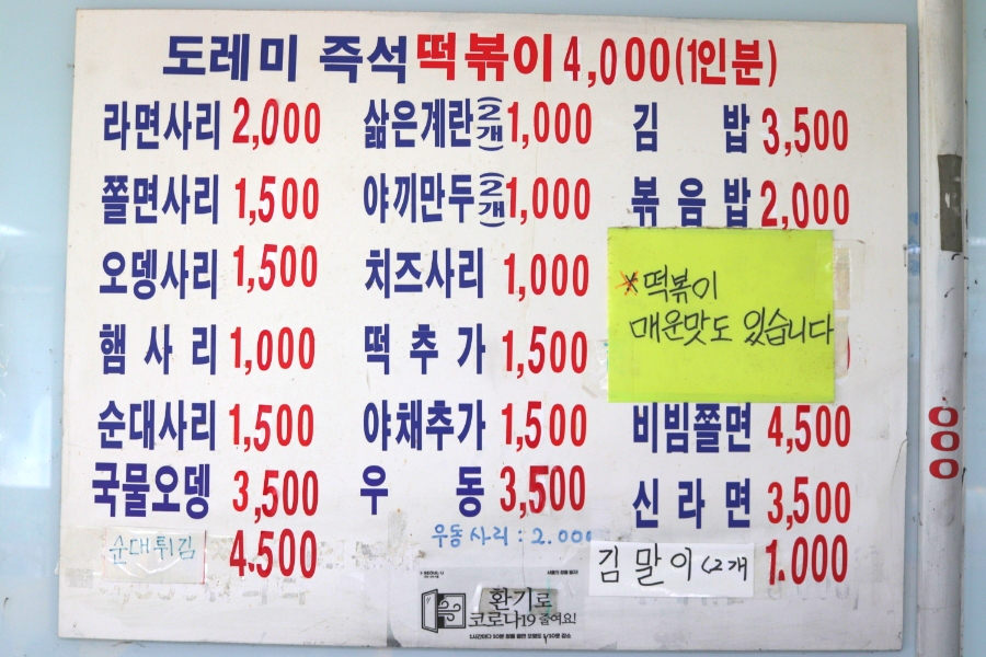 덕성여대 앞 '도레미분식 즉석떡볶이'는 우이신설선 '4.19민주묘지역' 1번 출구로 나와서 덕성여대 정문 쪽으로 향하면 우측에 하나은행 건물이 보이는데 그 사잇길로 들어가면 쉽게 찾을 수 있다.