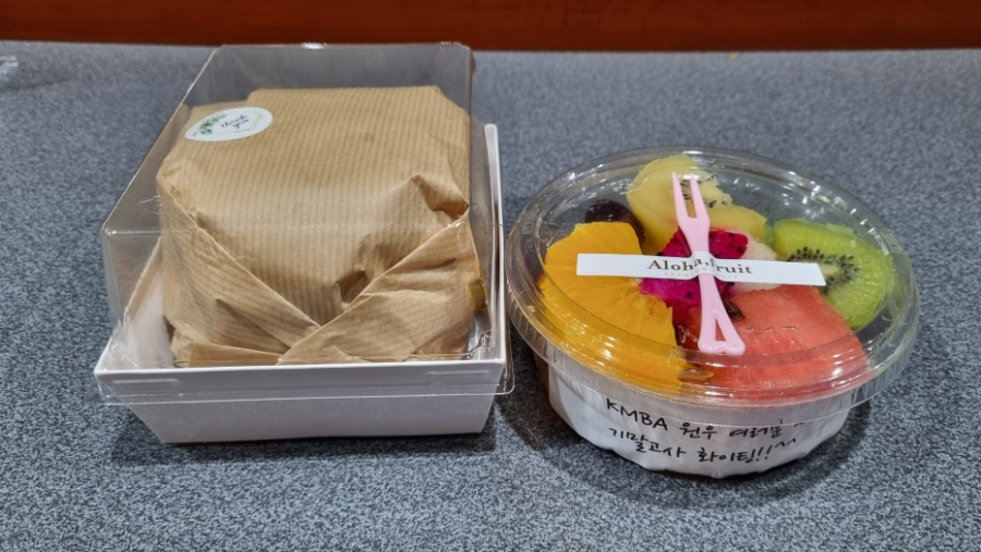 기말고사를 응원하기 위해서 학생회 기획조정본부에서 기말고사 응원 메시지가 있는 과일을 추가로 제공해 주었다.