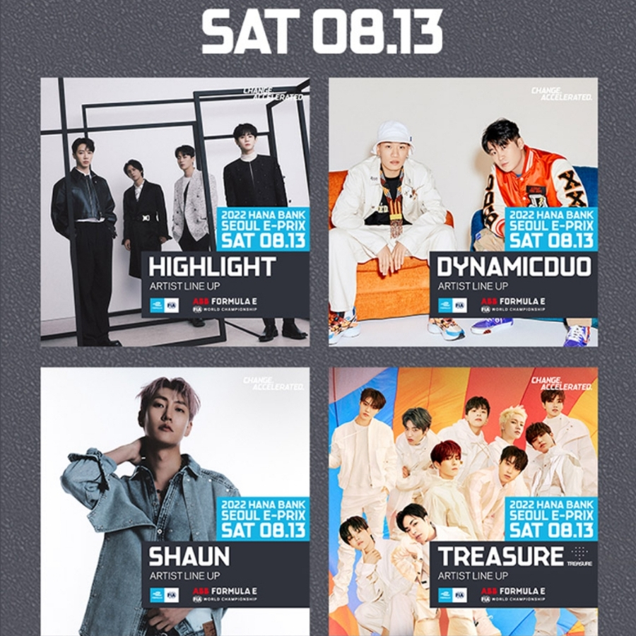 참고로 7월 6일 자에 공개된 ABB FIA Formula E World Championship 2022 HANA BANK SEOUL E-PRIX(하나은행 서울 E-프리) 일정 및 공개된 가수(아티스트) 라인업은 다음과 같습니다.