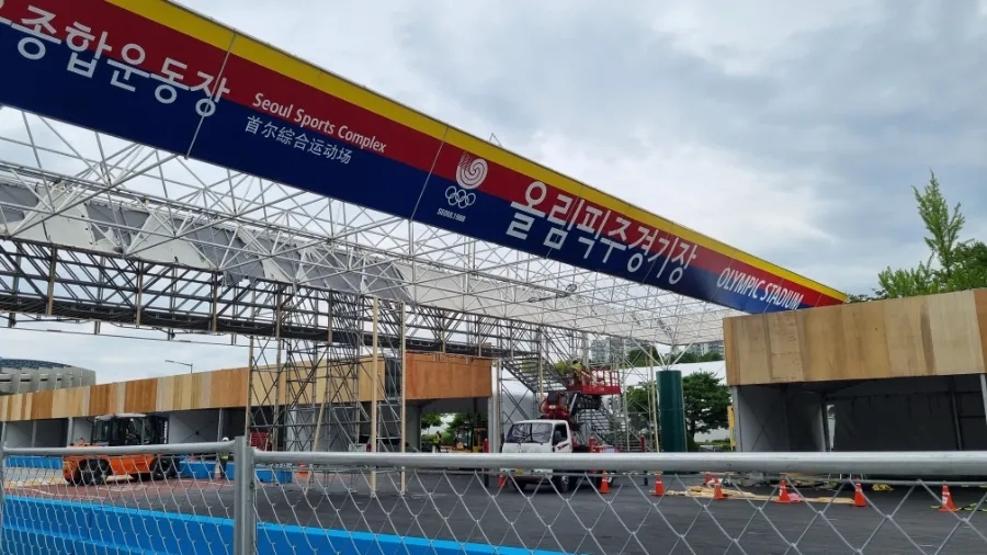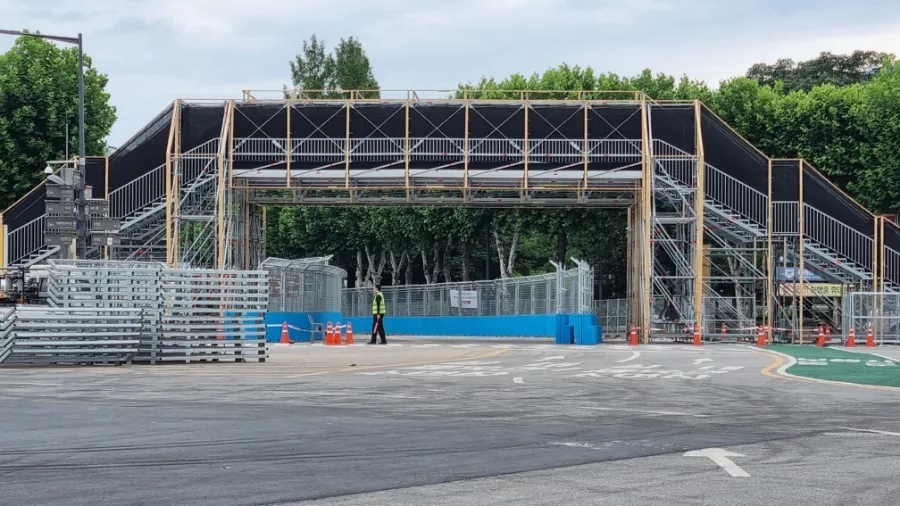 주경기장 앞에는 아직 설치되지 못한 펜스들의 적재(積載)되어 있었고, 주경기장 진입로인 서울 시가지 서킷(Seoul Streent Circuit) Turn 6(T6), 경기장에서 빠져나오는 Turn 15(T15) 구간을 위해서 아스팔트 공사가 진행 중이었다.