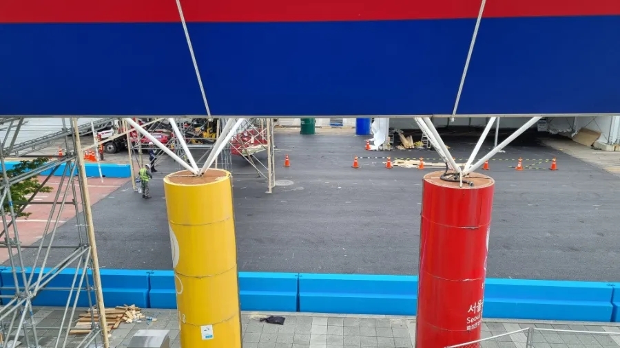 추가로 주차 요금소 뒤편으로 서킷을 건너 Allianz E-Village(알리안츠 E-빌리지)와 SeoulFesta(서울페스타) 행사장으로 향할 수 있는 이동 통로(육교)가 설치 중이었다.