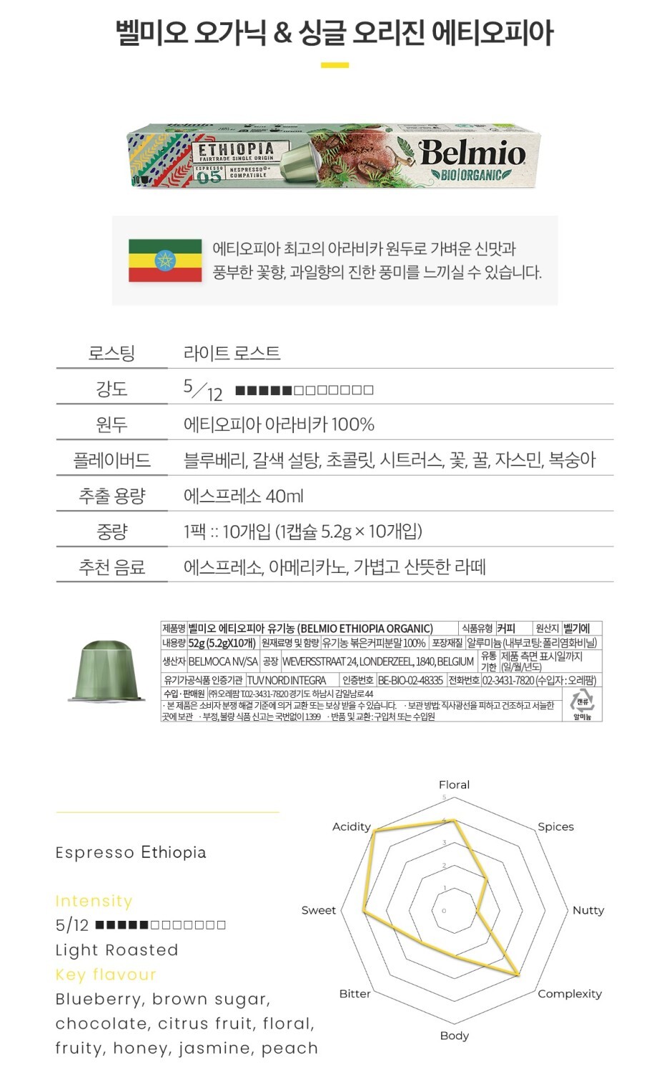 벨미오 유기농 싱글 오리진 에티오피아 캡슐커피 특징