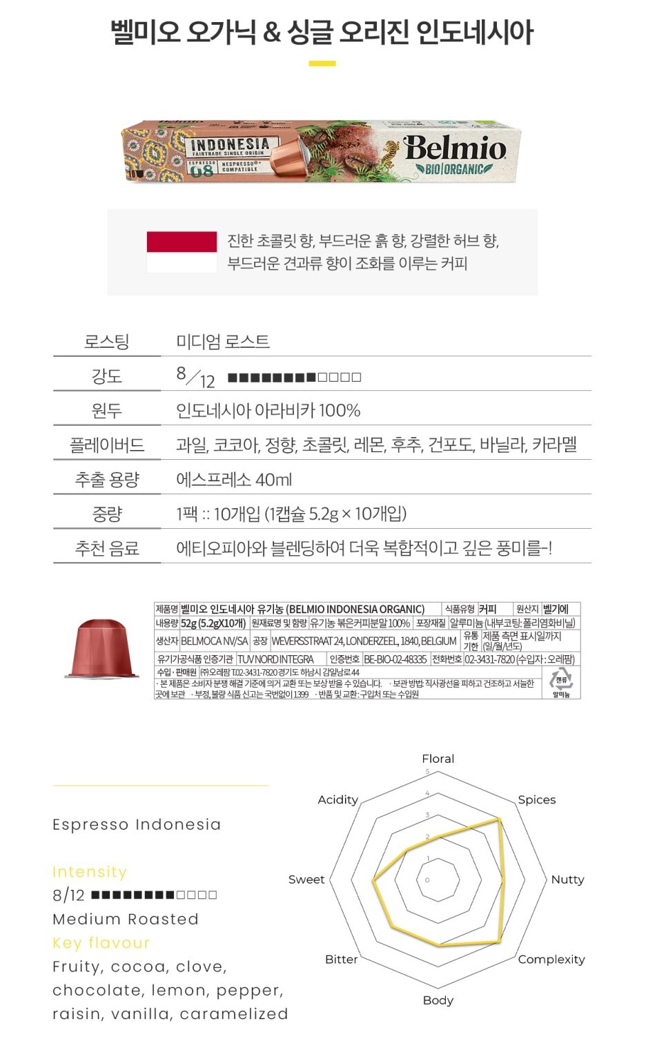 벨미오 유기농 싱글 오리진 인도네시아 캡슐커피 특징