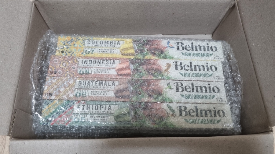 다음 사진들은 벨미오 유기농 싱글 오리진 캡슐커피 유통기한 임박 상품 배송비 체험 이벤트 포장 및 제품 디테일입니다.