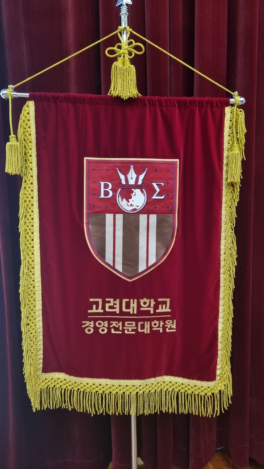 예전에는 단과대학별 문장이 없었는데 단과대학 문장이 생긴 뒤에 경영전문대학원 깃발이 수펙스 홀에 있어서 관리인분께 부탁해서 개강총회 분위기를 내기 위해 깃발을 단상에 놓았다.