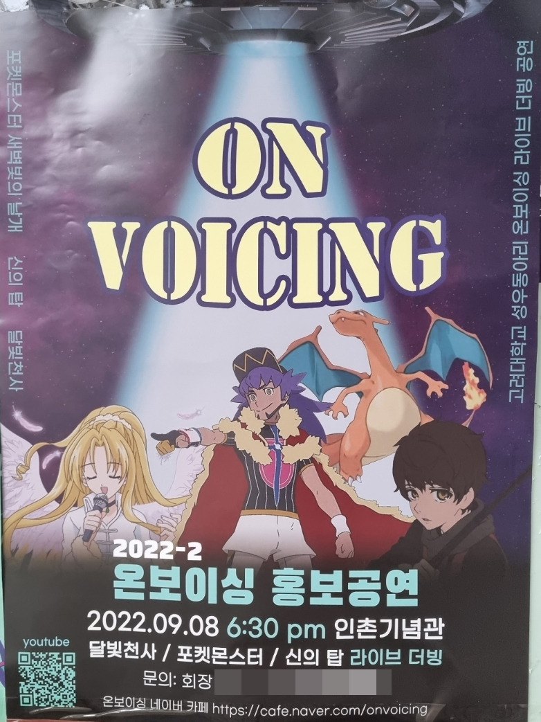 바로 뿝!으로 유명한 블리자드(Blizzard) 오버워치(Overwatch) 솜브라 성우인 김연우 성우가 활동한 고려대학교 성우동아리 '온보이싱(OnVocing)' 포스터였다.