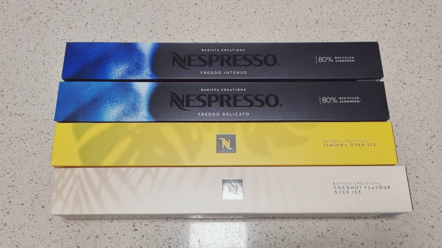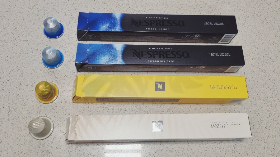 참고로 '프레도 델리카토'와 '프레도 인텐소'는 60 캡슐(각각 30캡슐)씩 묶어서 '오리지널 바리스타 크리에이션 포 아이스 커피 듀오' 또는 '오리지널 바리스타 크리에이션 포 아이스커피 듀오 6 슬리브'로 판매 중이며, 네스프레소 오지니널 커피머신 시티즈 구매 시 받는 네스프레소 클럽 크레딧 바우처 적용 가능합니다.