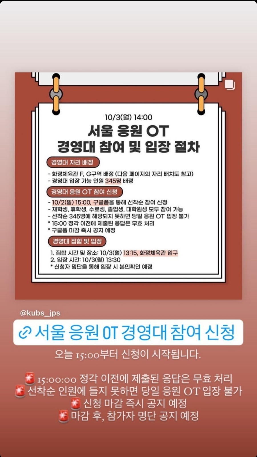 3년 만에 대면으로 진행하는 응원 OT이다 보니 응원단에서도 고려대학교 2022년 2학기 응원 OT 입장 및 티켓 배부에 관한 공지가 계속해서 올라왔다.