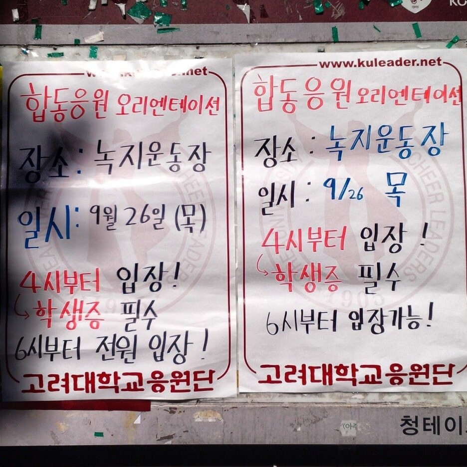 ps2) 10월 3일부터 연세대학교 응원단을 소재로 한 SBS 드라마 '치얼업'이 반영될 예정인데 이 드라마의 여파로 내년 양교(고려대학교 & 연세대학교) 응원 OT가 더 박 터질 수도...