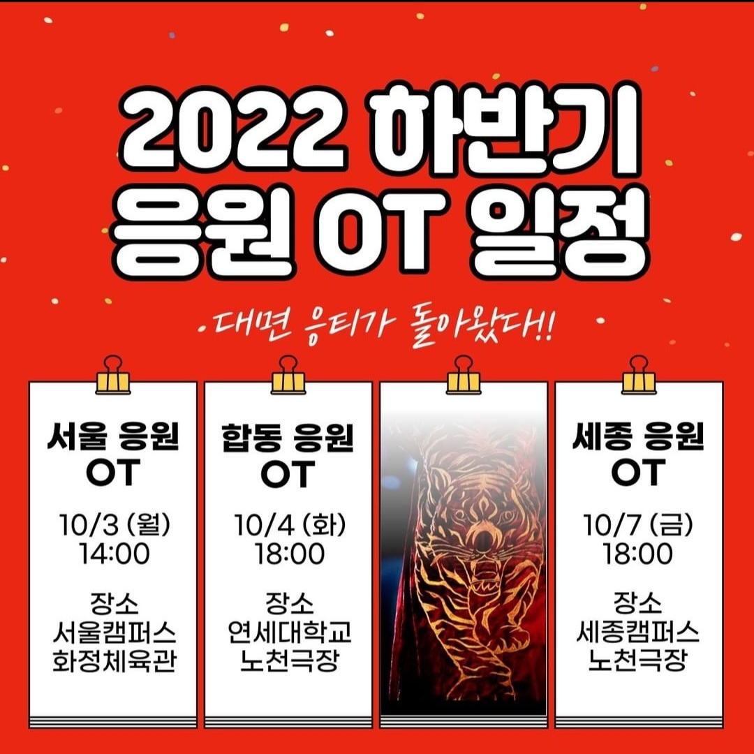 ※ 생생한 고려대학교 2022년 2학기 응원 OT 현장 후기는 포스팅 중간을 참고하시기 바랍니다.