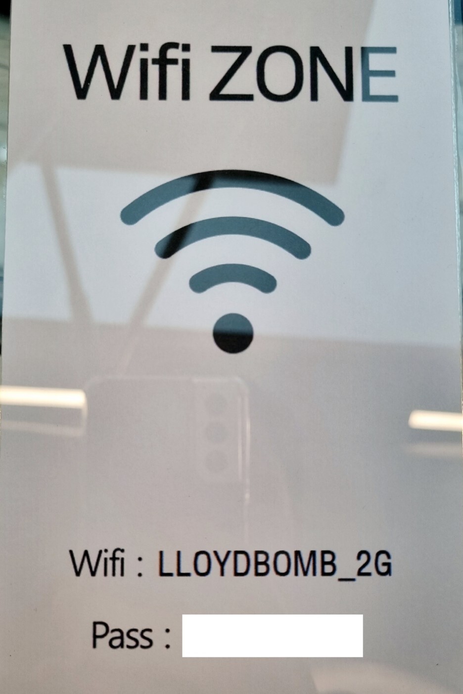 대기석에서 기다리면서 핸드폰 충전도 하고 옆에 있는 안내 문구도 보았는데 다른 로이드밤 지점과 동일하게 로이드밤 정액권 안내가 있었고 뒷면에는 와이파이 비밀번호가 있었다.