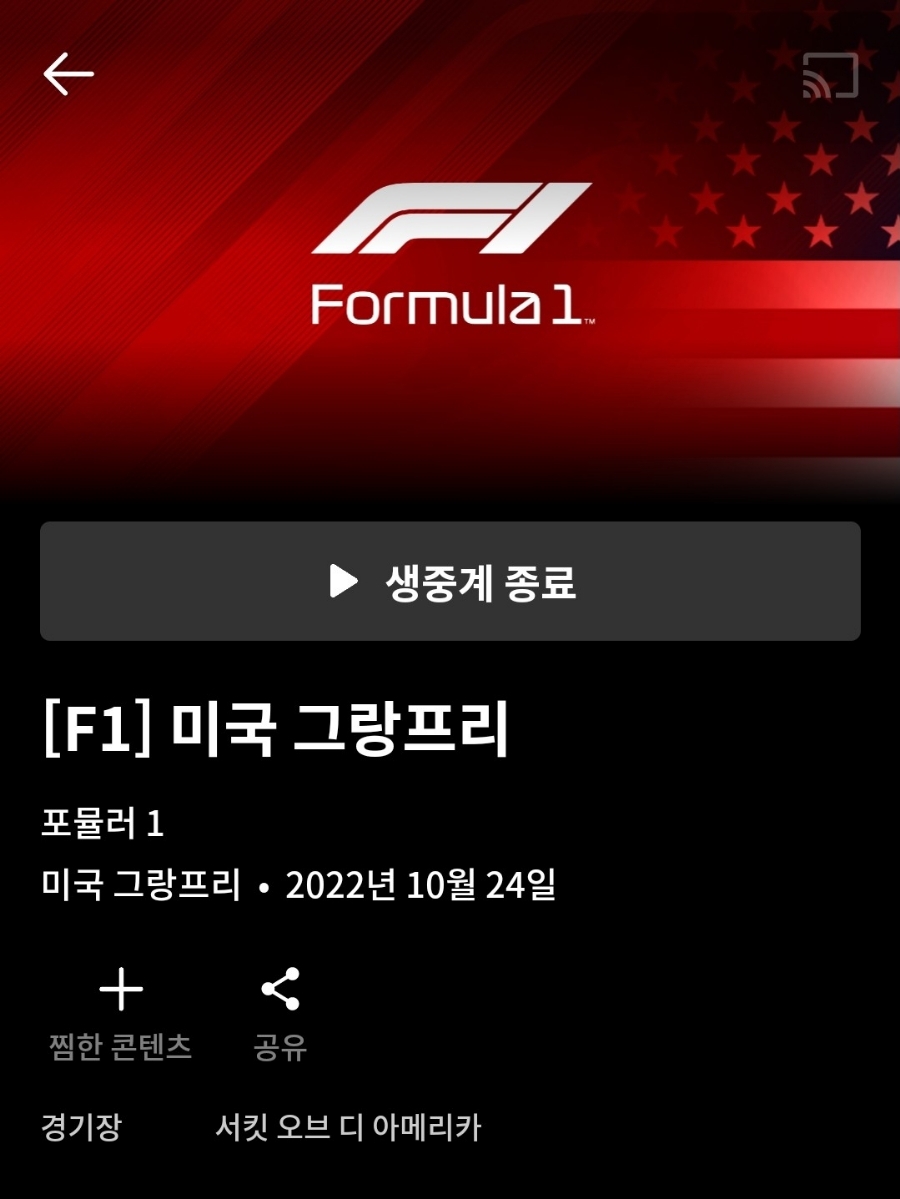 ※ 쿠팡플레이 F1 미국 그랑프리 한국어 중계 후기는 포스팅 하단을 참고하시기 바랍니다.