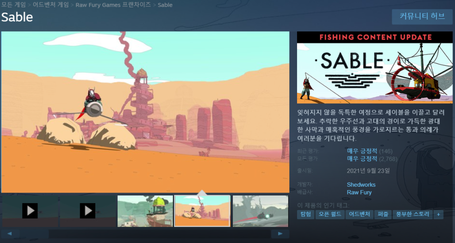 5. 2022년 12월 19일 에픽게임즈 스토어 홀리데이 미스터리 게임 배포 예상 'Sable(세이블)' [출처 : 레딧(Reddit)] 적중