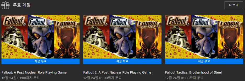 에픽게임즈 2022 홀리데이 미스터리 게임 무료 배포 목록(2022/12/16 ~ 2022/12/30)