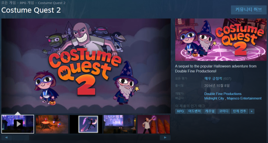 4. 2022년 12월 18일 에픽게임즈 스토어 홀리데이 미스터리 게임 배포 예상 'Costume Quest 2(코스튬 퀘스트 2)' [출처 : 루리웹 & 레딧(Reddit)] 적중