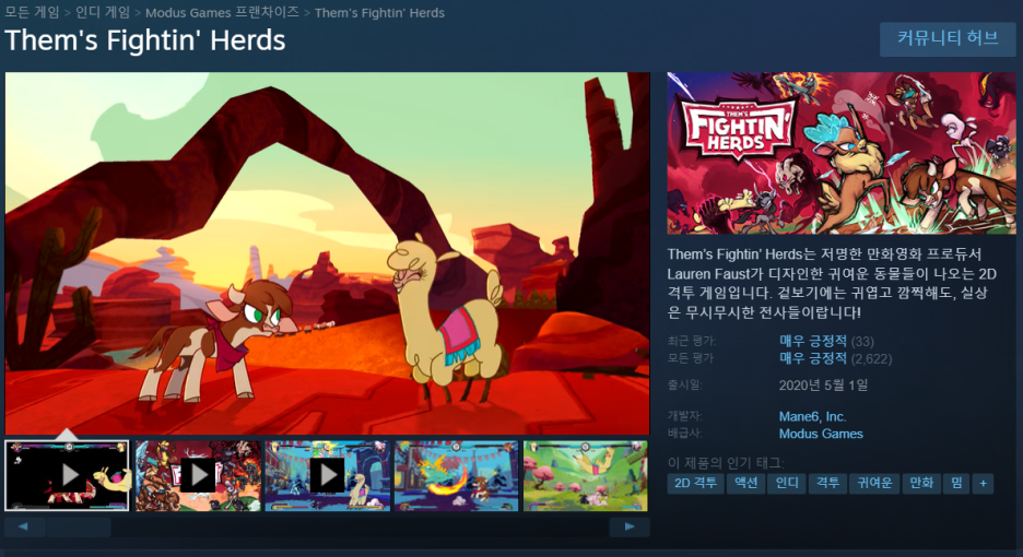 Them's Fightin' Herds는 저명한 만화영화 프로듀서 Lauren Faust가 디자인한 귀여운 동물들이 나오는 2D 격투 게임입니다. 겉보기에는 귀엽고 깜찍해도, 실상은 무시무시한 전사들이랍니다!