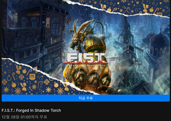13. 2022년 12월 27일 에픽게임즈 스토어 홀리데이 미스터리 게임 배포 예상 'F.I.S.T.: Forged In Shadow Torch(피스트: 포지드 인 쉐도우 토치)' [출처 : 루리웹] 적중