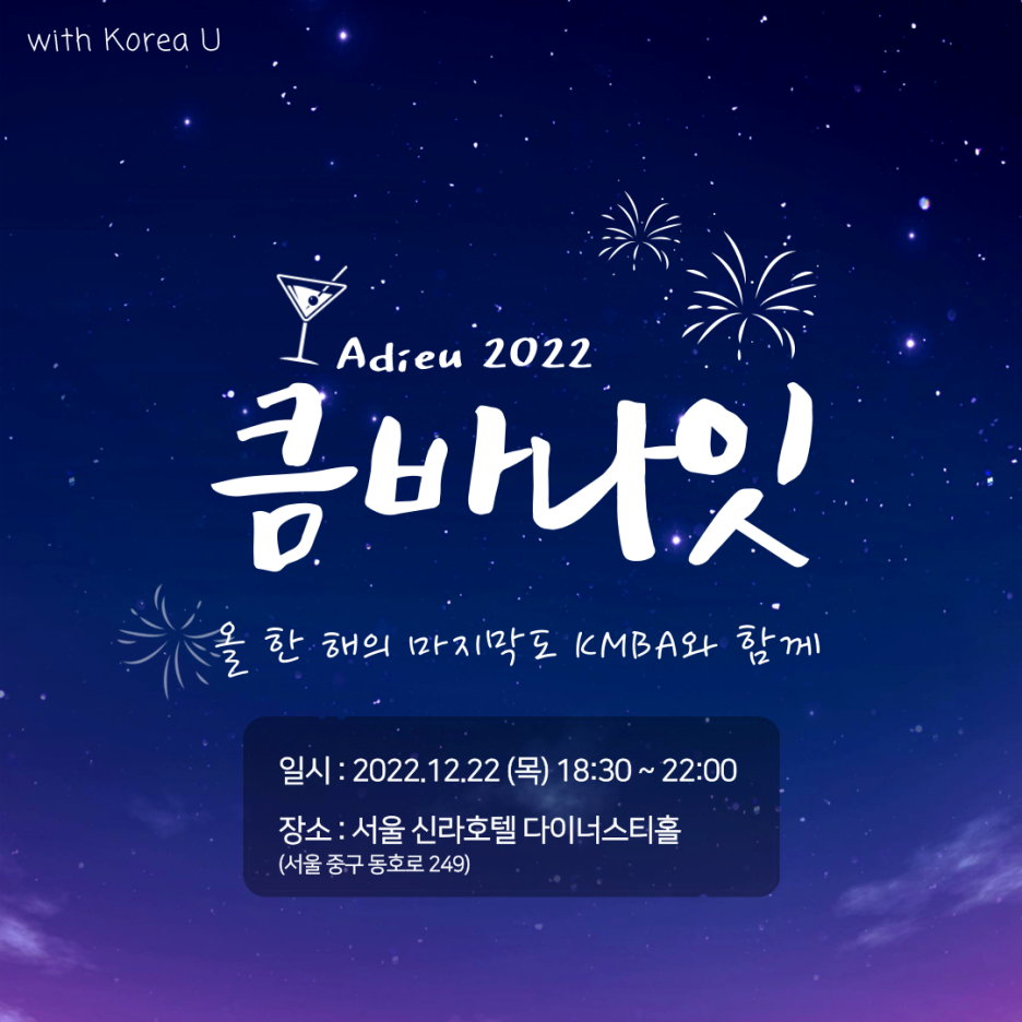 2022년 고려대학교 경영전문대학원 Korea MBA(KMBA) Night 식순은 다음과 같았다.