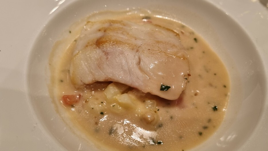 3) 포테이토 마세두안을 곁들인 광어 수비드 구이와 뱅 블랑 소스