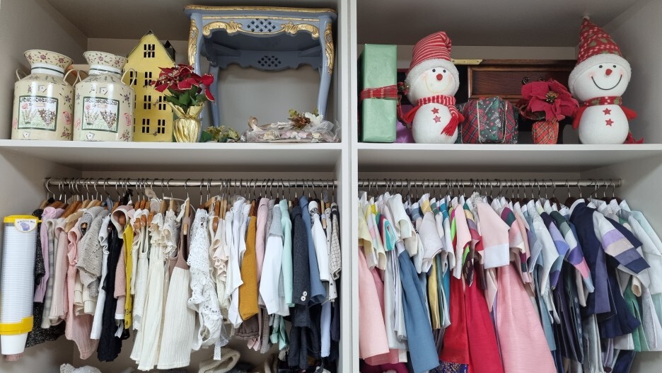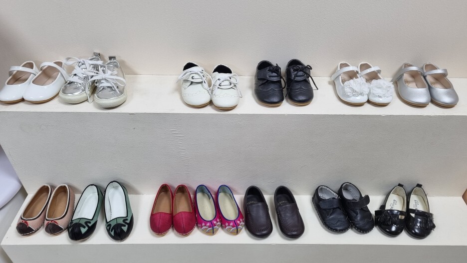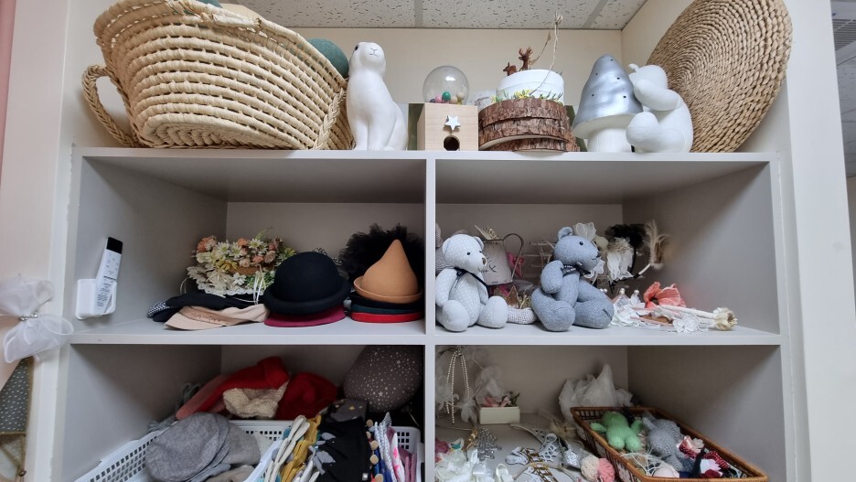 홈페이지와 인스타그램에서 예시 사진을 보긴 했지만 촬영 당일에 샘플 사진을 다시 한번 보면서 우리 가족과 뚱주가 촬영할 컨셉을 선택하는 동안 잠시 스튜디오를 둘러봤다. 두돌이라서 우리는 뚱주가 입을 옷을 준비했지만 100일, 돌 사진을 위한 의상들이 준비되어 있었다.