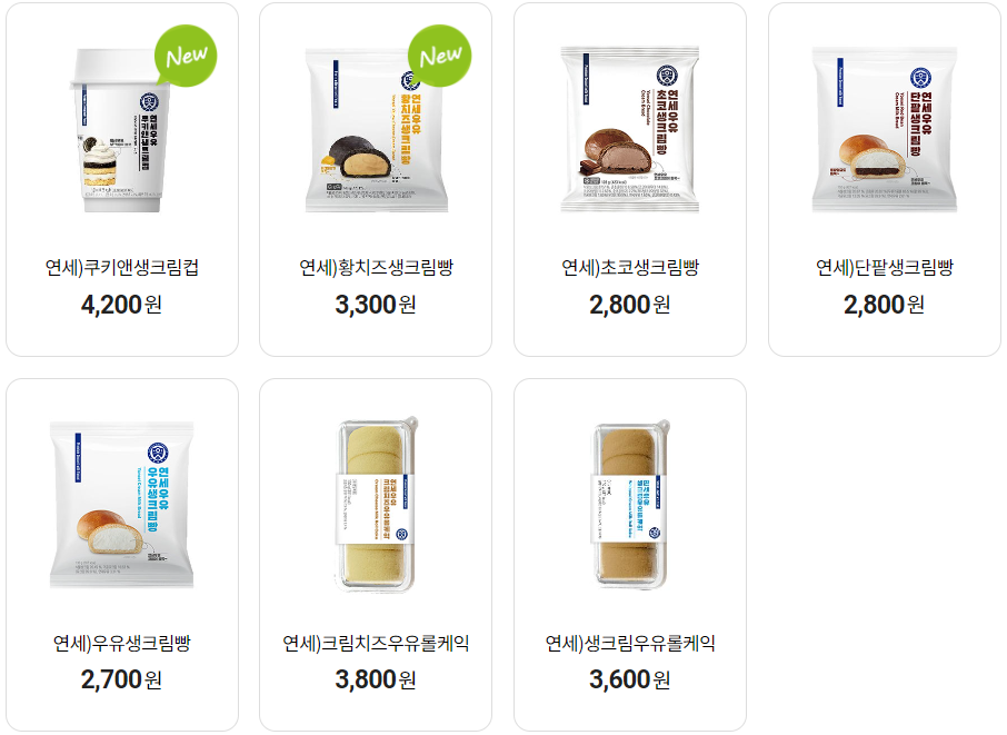 내가 구매한 것은 최초 출시된 CU 연세우유 우유생크림빵이 아닌 연세우유 단팥생크림빵이기도 하고, 구매할 당시 통신사 포인트로 할인을 받았기 때문에 각각의 가격이 기억이 나지 않아서 CU 홈페이지에 들어가서 정가를 확인해 보았다.