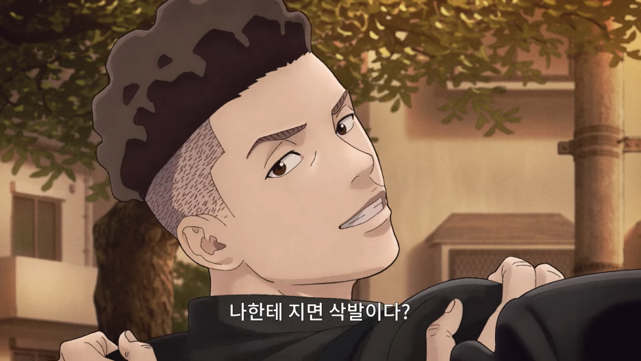 왜 이들이 걸어가고 있을까? 바로 다음 장면에서 산왕공고 선수들의 모습이 보여서 바로 이해가 되었다. 오프닝의 의도는 북산과 산왕공고가 전국 대회 8강 경기에 임하기 위해 경기장에 입장하는 모습이었다!