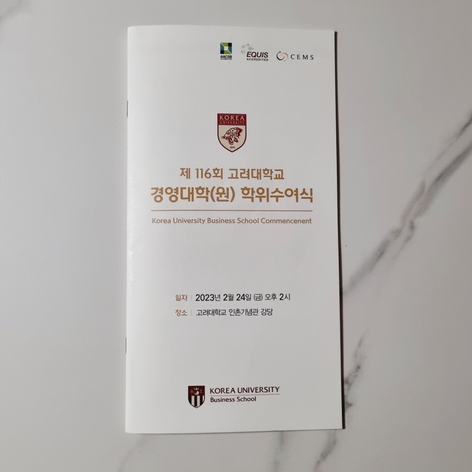 직장인은 금요일에 휴가를 쓰는 게 국룰이기 때문에 2023년 고려대학교 경영전문대학원 Korea MBA(KMBA) 졸업식 참석을 위해서 휴가를 쓰는 게 눈치 보이지는 않았지만, 고려대학교 전통이라면 전통인 '졸업식 = 2월 25일' 공식이 깨져서 조금은 아쉬웠다.