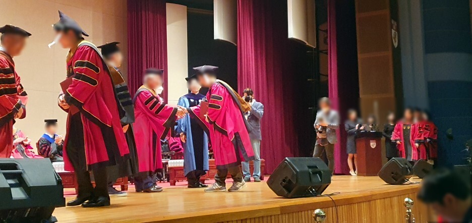 시간이 흘러 마지막 학위기 수여자가 등장했을 때 가장 큰 환호와 박수 소리가 나왔다. 의도하지 않게 마지막 학위기 수여자가 모든 시선이 집중되어 후배님이 당황하셨던 게 기억이 난다ㅎㅎ