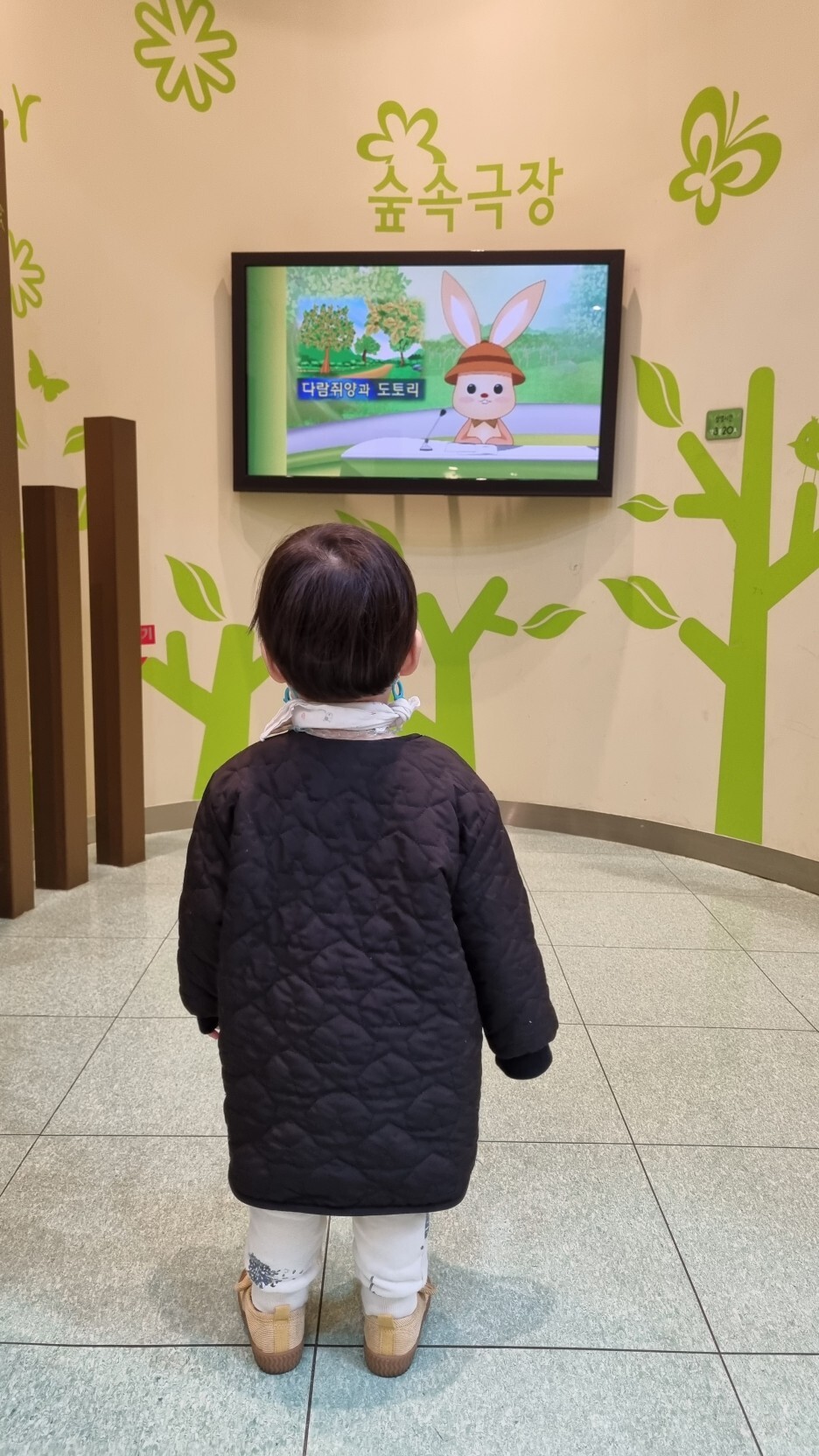 초록마을 입구에는 약식화된 성남시 지도와 주요 시설들이 있고, 벽면에는 성남시의 대표적인 식물들이 사진과 함께 설명이 적혀있었다. 그리고 중간중간에 시청각 자료들이 TV에서 재생되는데 최근 유튜브의 맛을 알아버린 25개월 뚱주는 영상이 재생되는 곳에서 한참을 머물러 있었다.