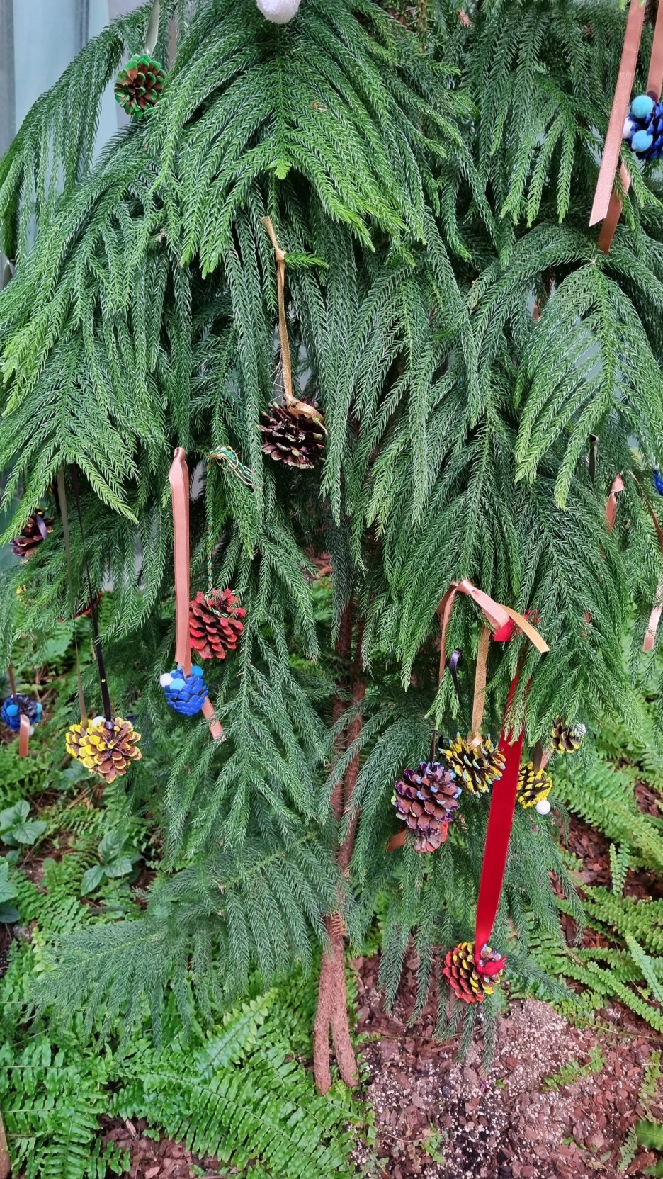 초록마을이 끝나면 실내 온실을 거쳐 계단을 통해서 2층으로 갈 수 있다. 크리스마스가 얼마 지나지 않은 연초였기 때문에 크리스마스트리 장식 느낌으로 귀여운 솔방울 오너먼트가 나무들에 달려있었다.