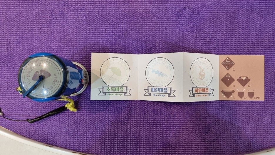 파란마을은 성남시를 지나 한강으로 합류하는 탄천의 생태계에서 다룬 공간이고, 하얀마을은 성남시의 환경 보전을 위해 재활용, 재생에너지 사용 방안 등을 정리한 공간입니다.