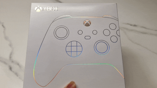 처음에는 아무 생각이 없었으나 상자 측면과 후면을 찍기 위해서 이리저리 움직여 보니 Xbox 컨트롤러/패드가 빛에 반사되어 반짝이는 걸 알게 되어 Xbox 로고와 컨트롤러/패드 그림이 반짝이는 것을 gif로 만들었다.