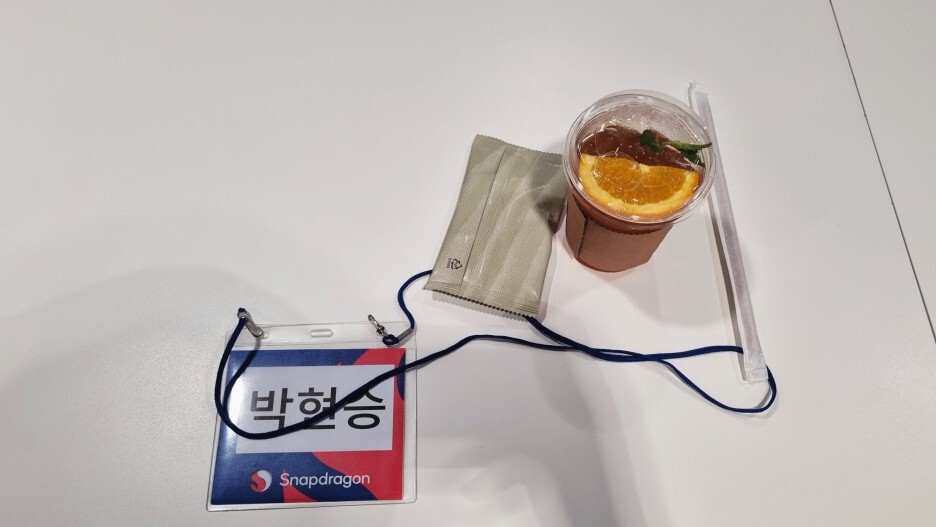 스냅드래곤 인사이더즈 코리아 1st(첫 번째) 밋업을 위한 회의실에 도착하니 자리에 스냅드래곤 인사이더즈의 이름표와 음료가 준비되어 있어서 기념으로 찰칵!