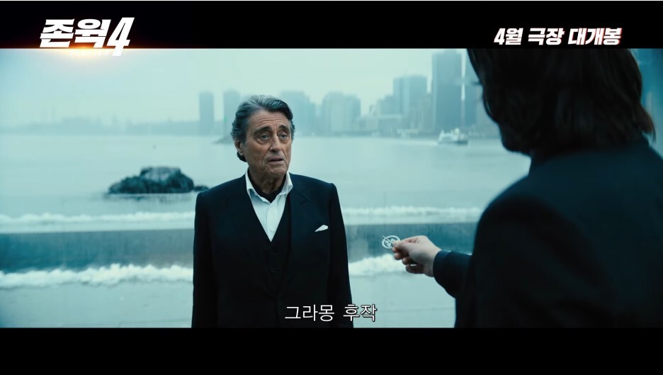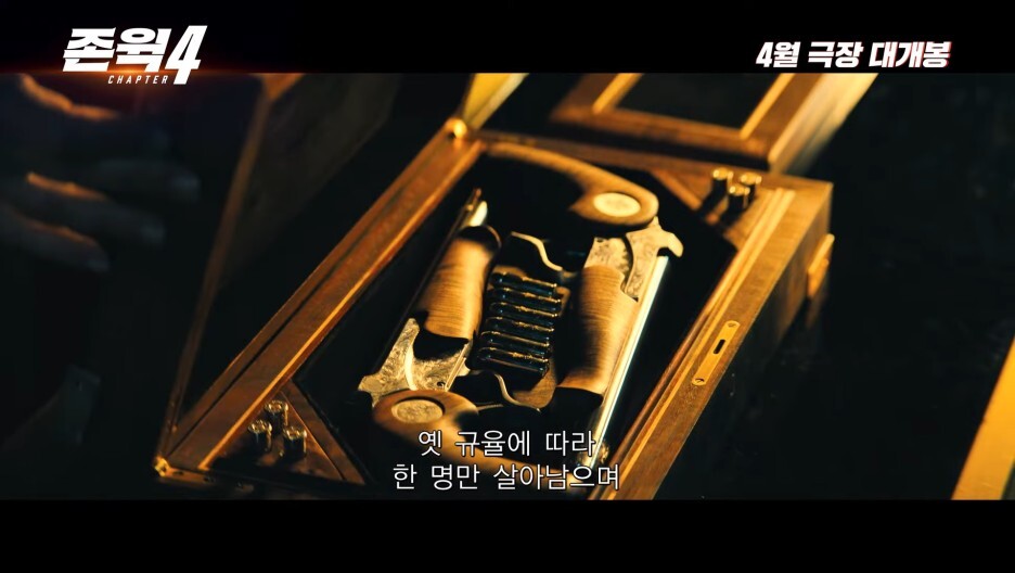 누군가에게 쫓기는 인물들 그리고 그들을 쫓는 존 윅. 전작인 존 윅 3을 본 사람들은 알겠지만 존 윅이 찾는 인물은 '최고 회의(High Table)' 위에 있는 '장로(The Elder)'.