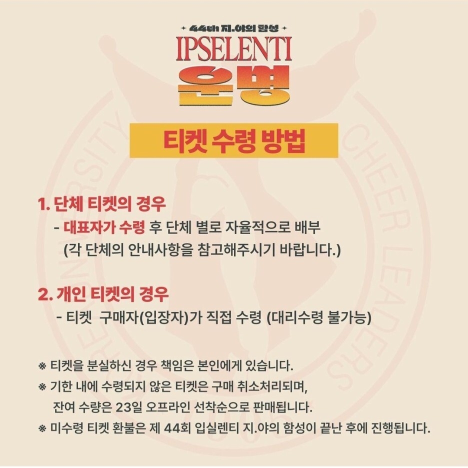3. 개인 티켓팅 2차 500장 : 대상 고려대학교 재학생, 휴학생, 수료생, 졸업생