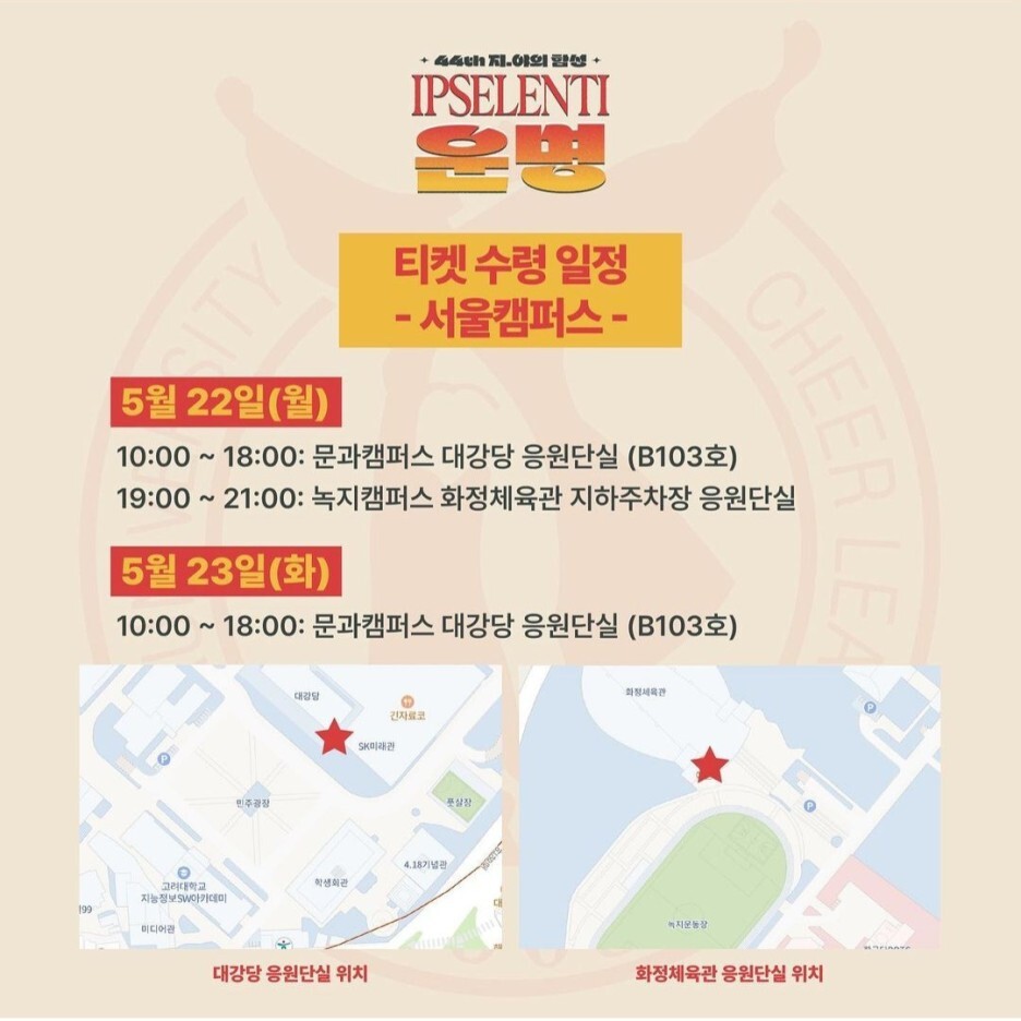 5월 8일 오후 12시 1차 개인 티켓팅 접수가 시작되었고, 떨리는 마음으로 신청을 하고 오후 9시에 고려대학교 응원단 인스타그램 라이브를 시청했다.