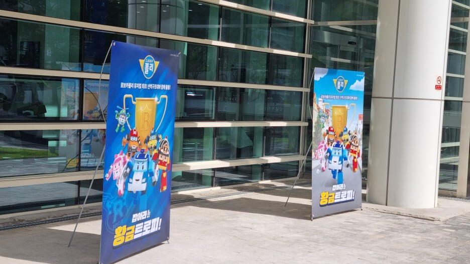 언제였는지는 까먹었지만 '엄마까투리는 슈퍼맘' 광고 현수막이 내려가고 '로보카폴리 - 잡아라! 황금트로피!' 현수막이 걸렸다.