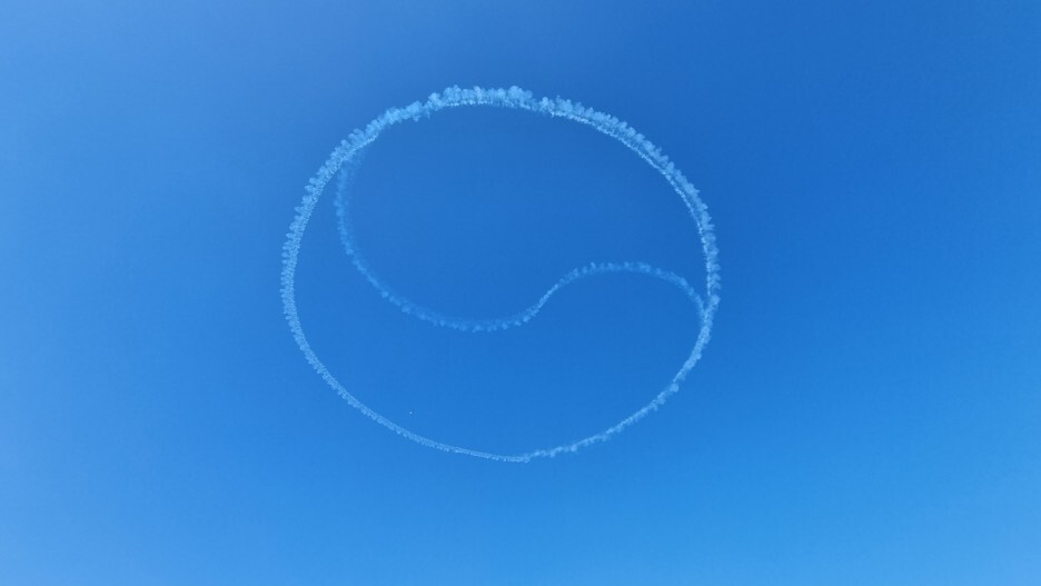 블랙이글스 에어쇼 시간은 다가오는데 결국 시간 내에 입장을 하지 못해서 나는 뚱주와 함께 대기줄에 나와서 대기줄 근처의 공터에서 블랙이글스 에어쇼를 관람했다.